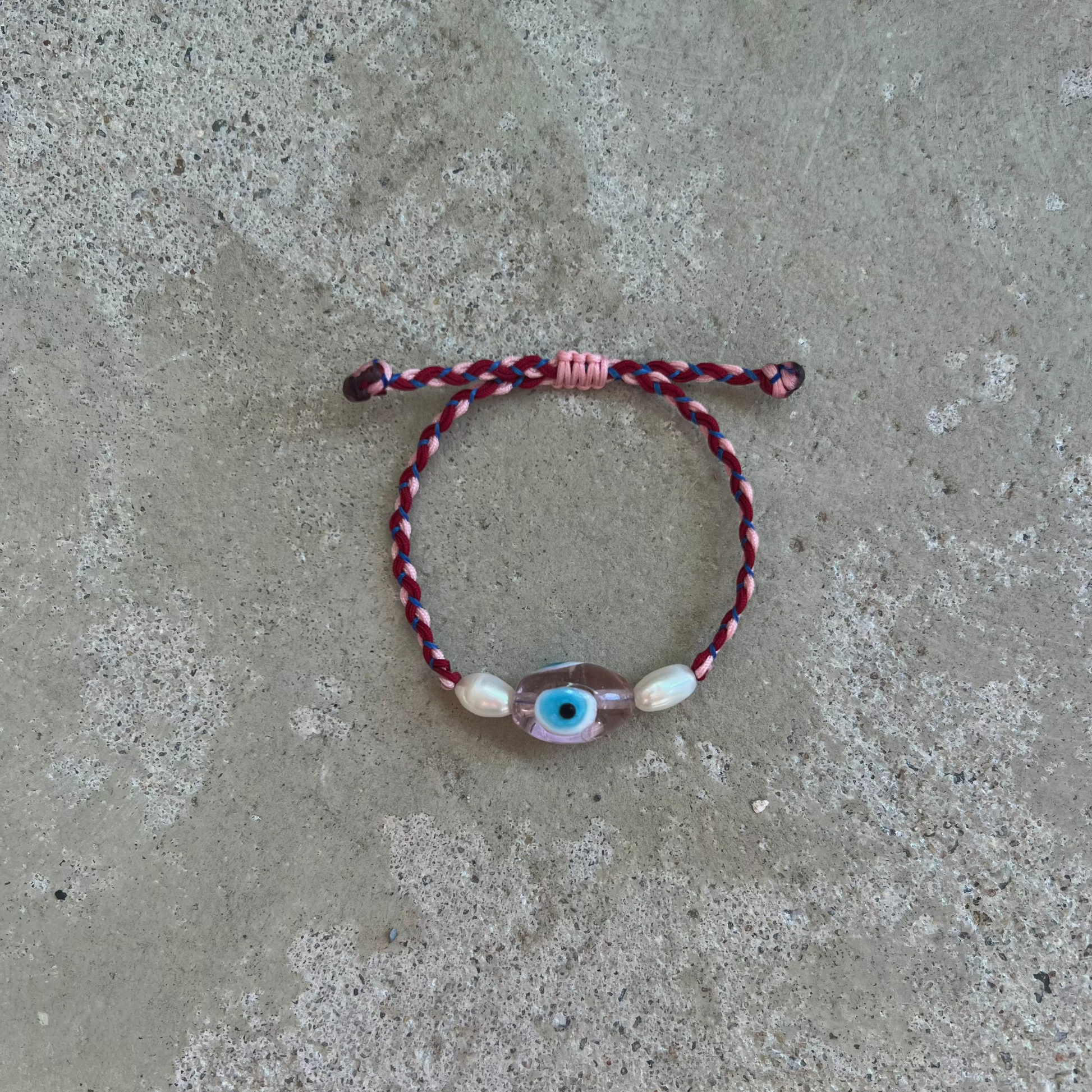 Das LOLA Armband mit zwei ovalen Süßwasserperlen, Glasperle in der Mitte und handgeflochtenen Band ist ein echter Hingucker an deinem Handgelenk - einzelne oder in Kombination getragen.