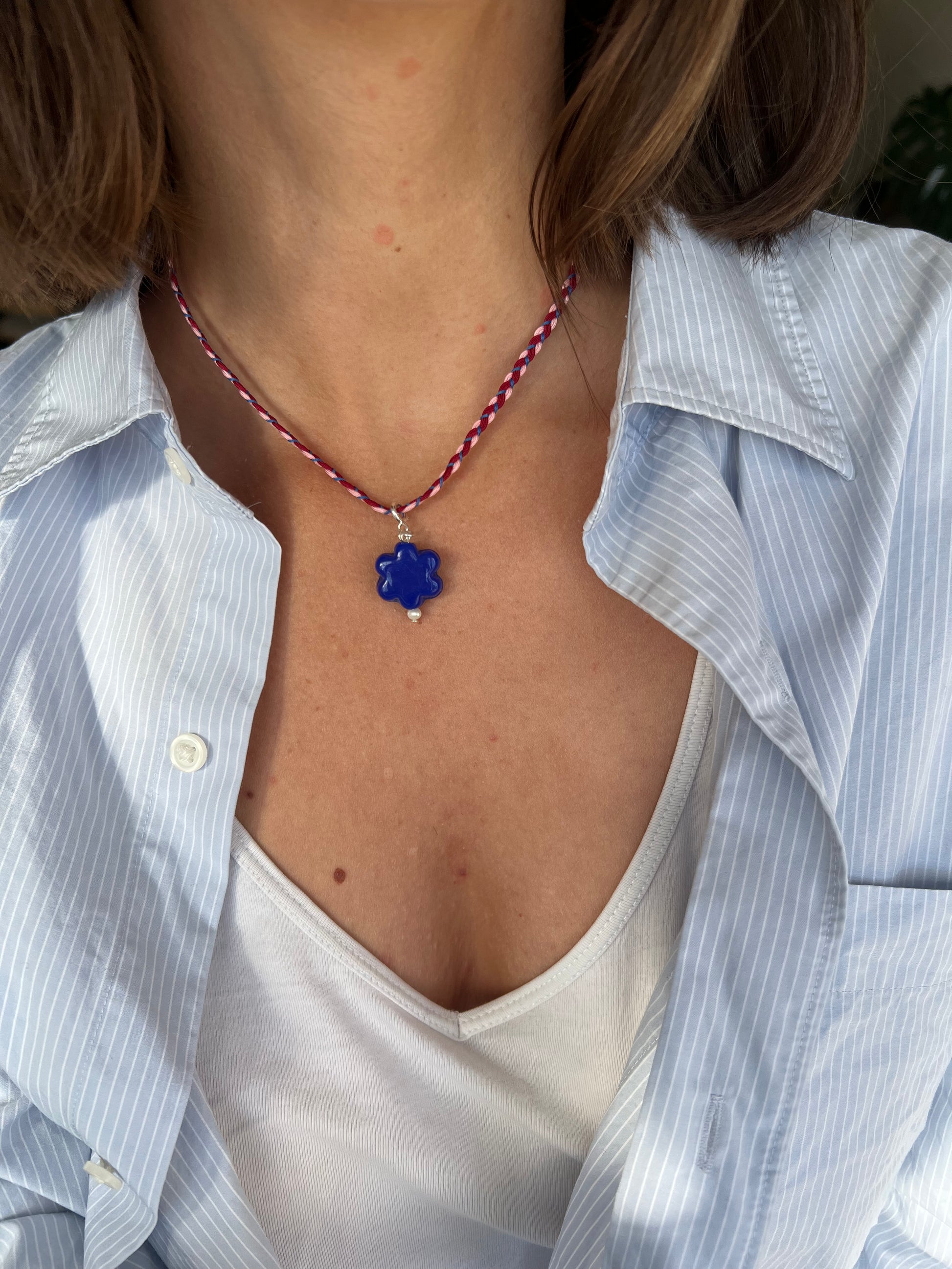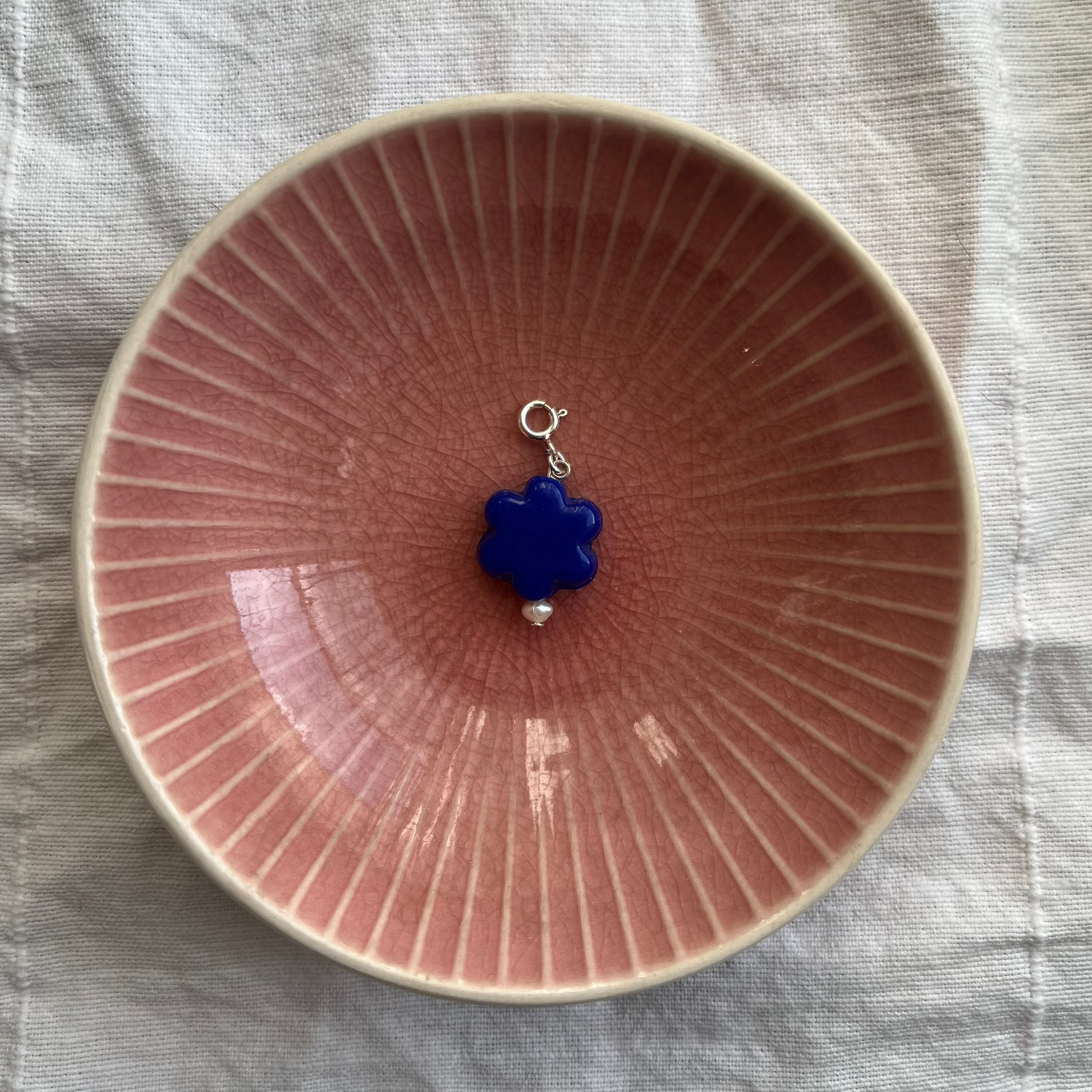 Ein schlichter Blumenanhänger aus Glas mit kleiner Süßwasserperle