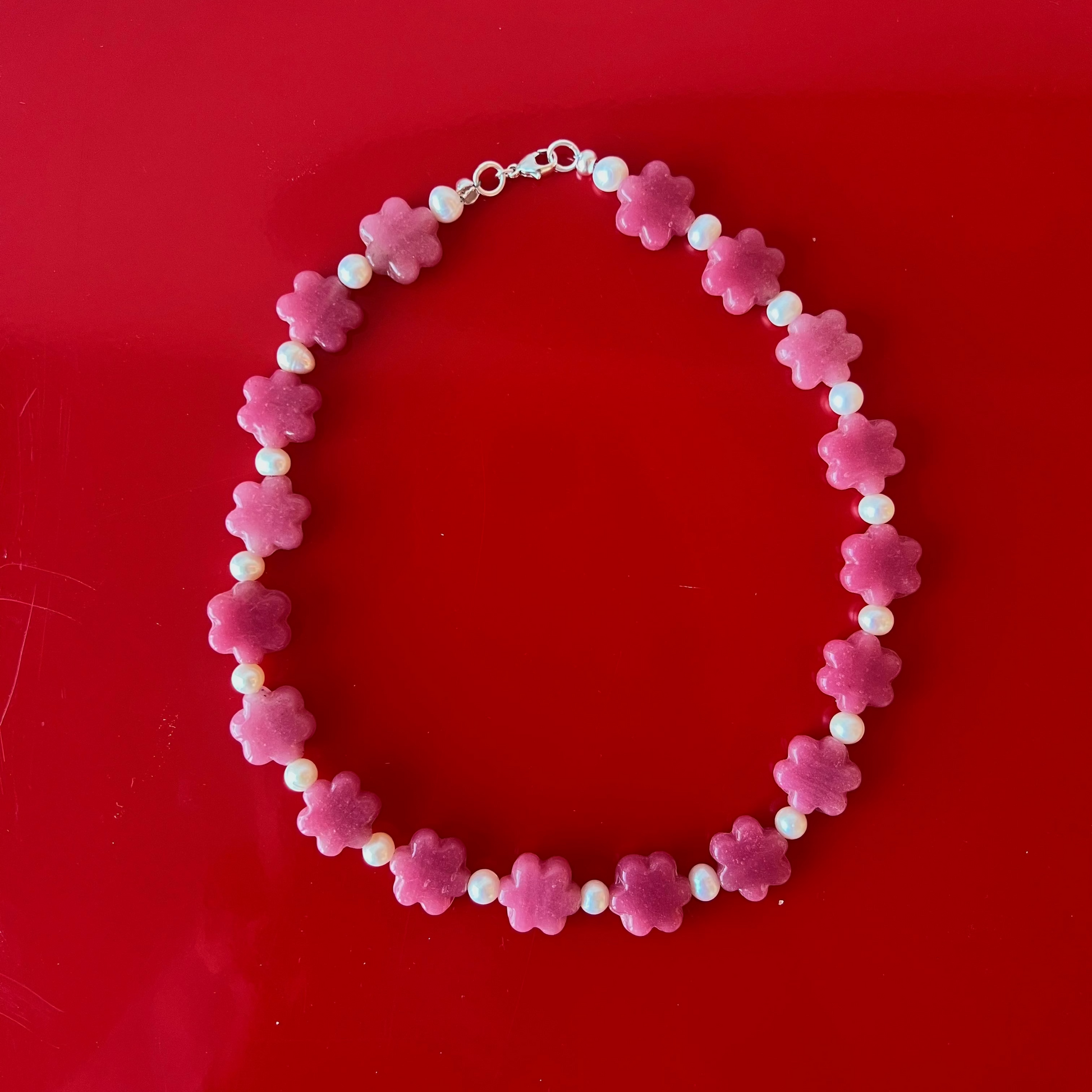 Die ORIA spricht für sich - mit den großen Glasperlen in Blumenform im Wechsel mit echten Süßwasserperlen ist sie ein echtes Statement